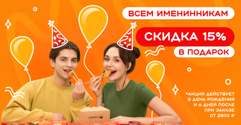 • На заказ со скидкой 15% в день рождения нельзя списывать баллы